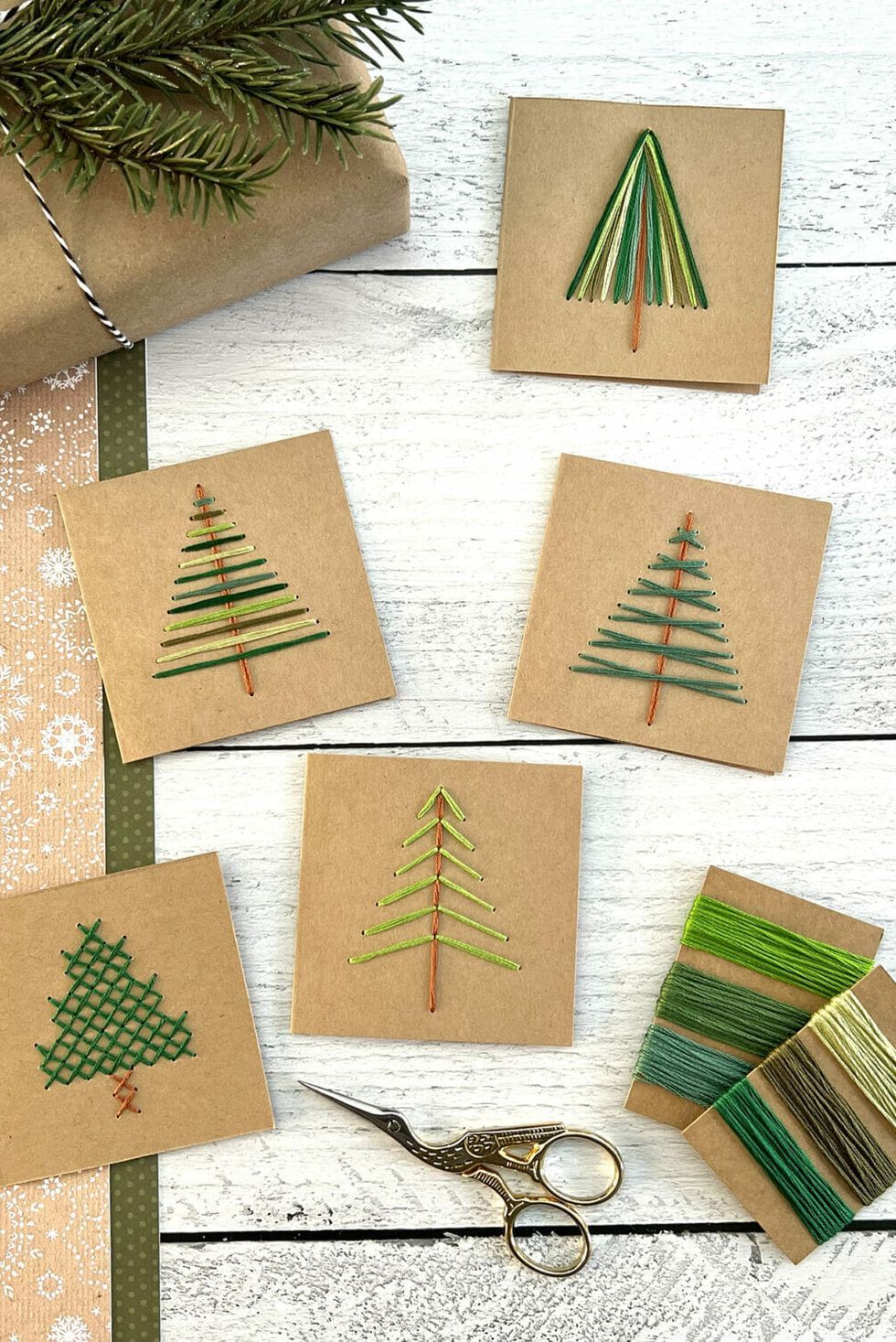 Utilisation de papier carton, fils et aiguilles, sapinage, paillettes, déco, etc