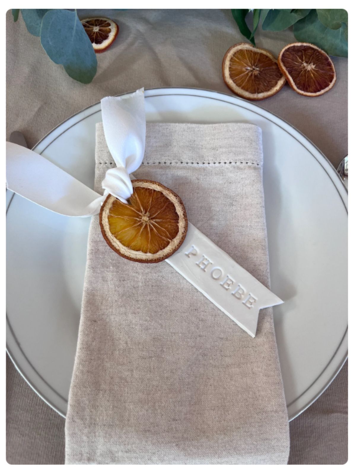 Utilisation de l'argile, de branches, d'agrumes séchées, de rubans et de tampons d'impression.